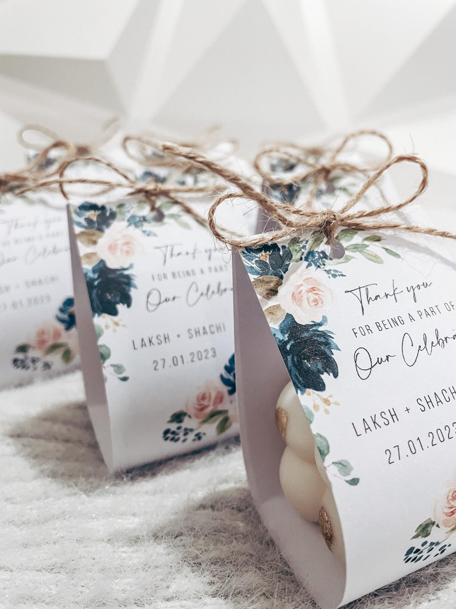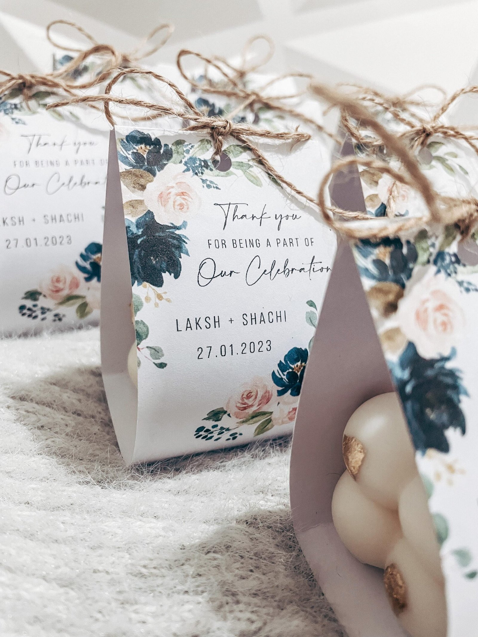 Available in two exquisite styles—one with shimmering gold leaf detailing for a touch of luxury, and the other for a classic, understated elegance—these candles are sure to captivate your guests. Whether it’s a wedding, birthday, or any special celebration, they serve as a memorable token of gratitude.